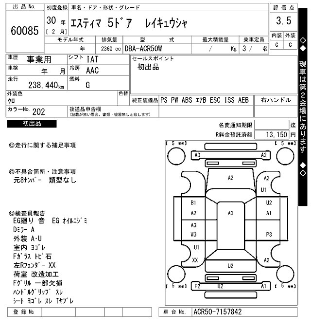 TOYOTA ESTIMA - лот 60085