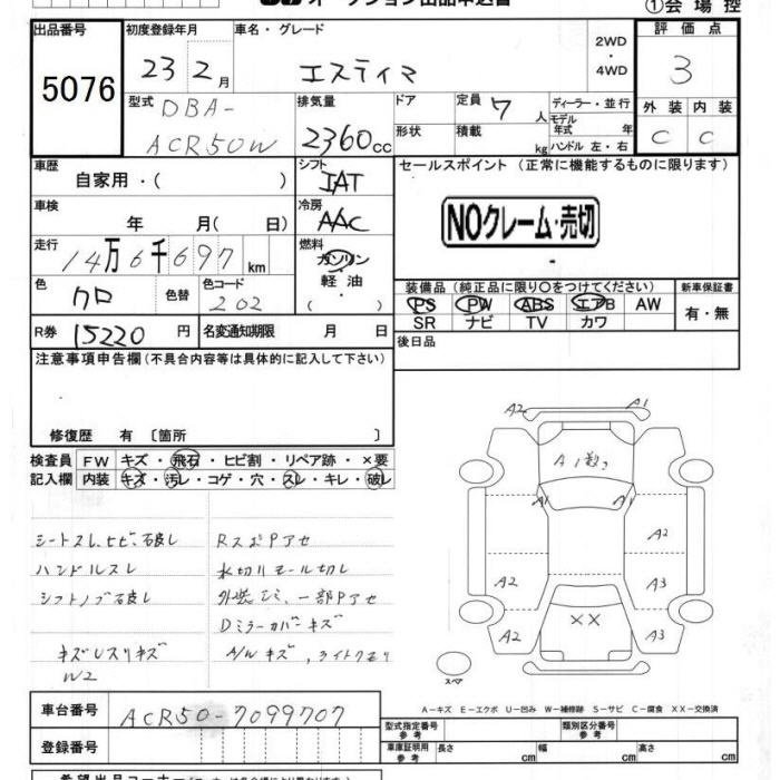 TOYOTA ESTIMA - лот 5076