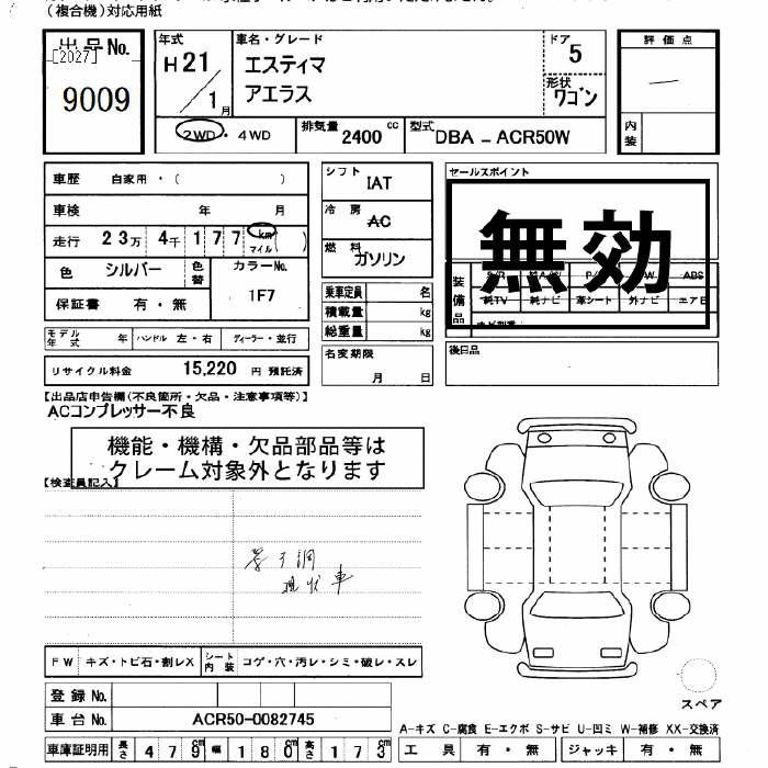 TOYOTA ESTIMA - лот 9009