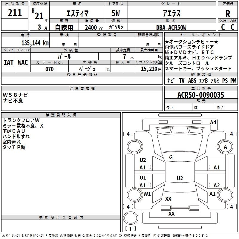TOYOTA ESTIMA - лот 211