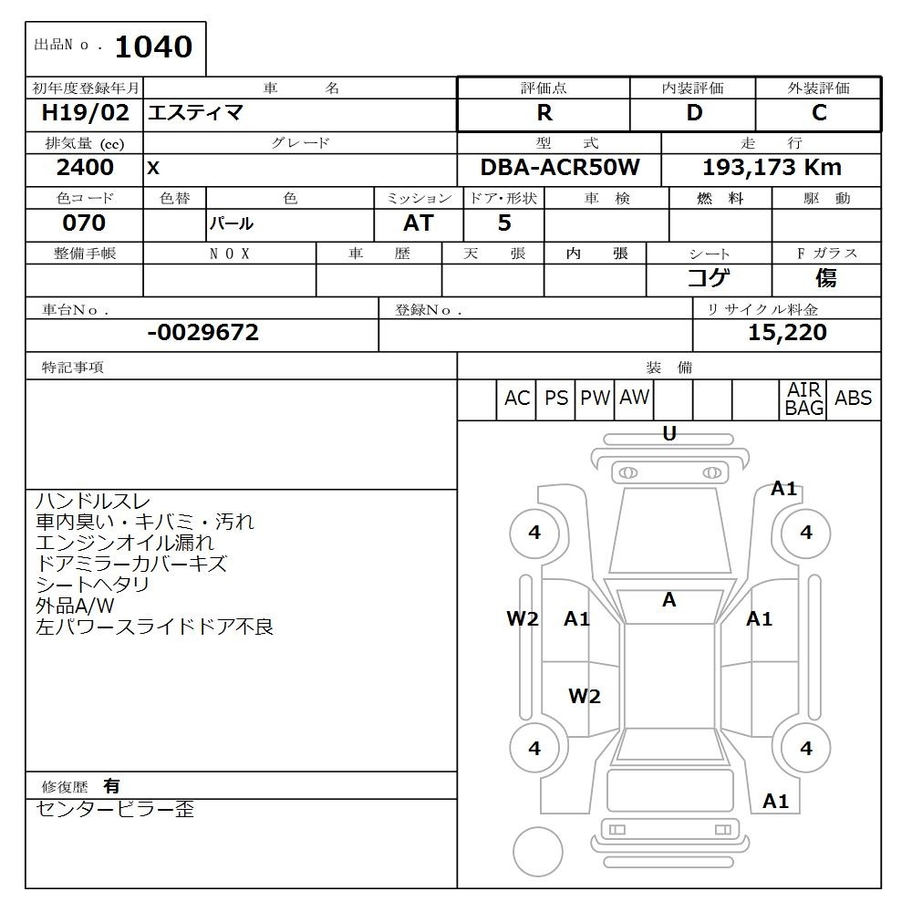 TOYOTA ESTIMA - лот 1040