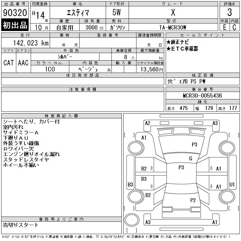 TOYOTA ESTIMA - лот 90320