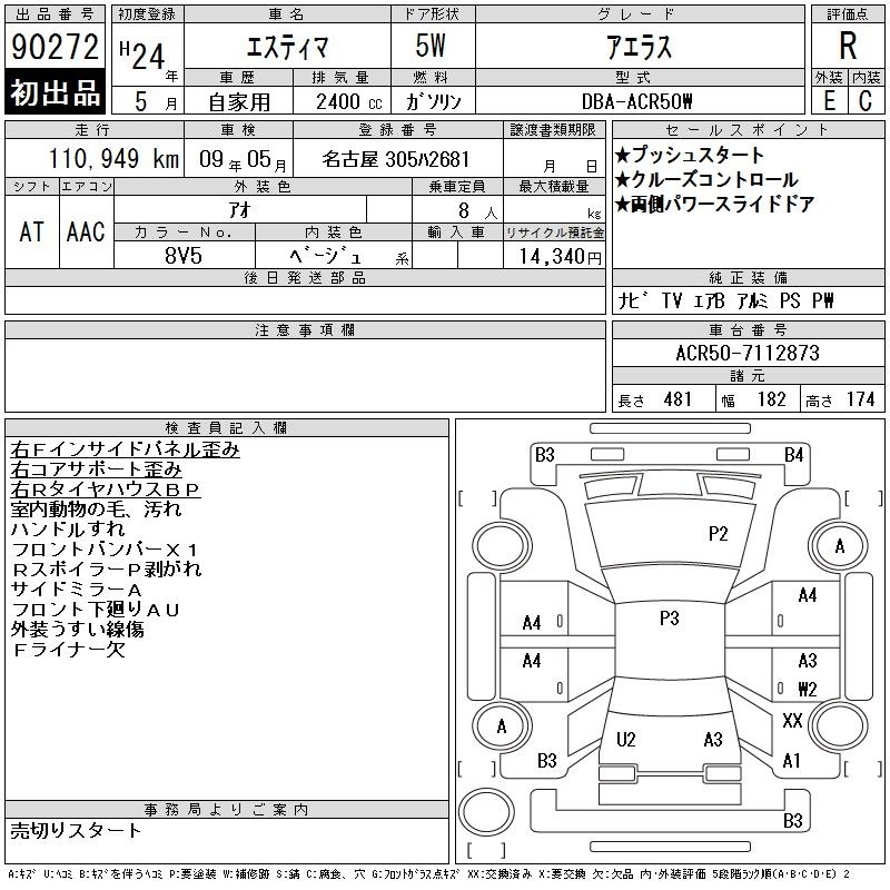 TOYOTA ESTIMA - лот 90272