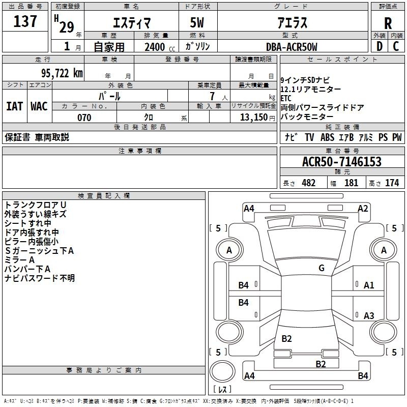 TOYOTA ESTIMA - лот 137