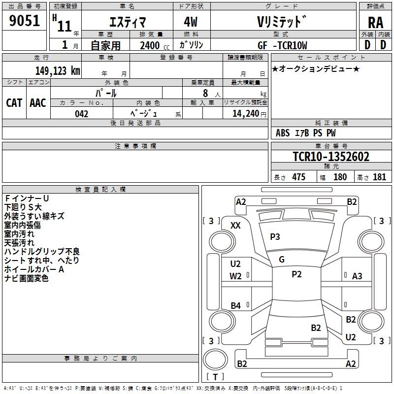 TOYOTA ESTIMA - лот 9051