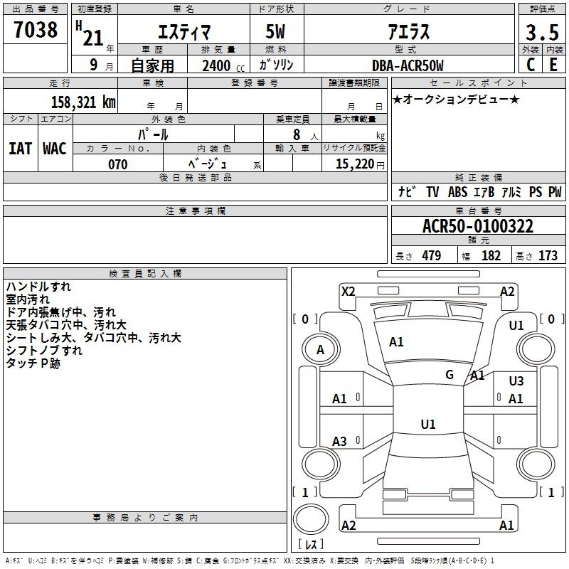 TOYOTA ESTIMA - лот 7038