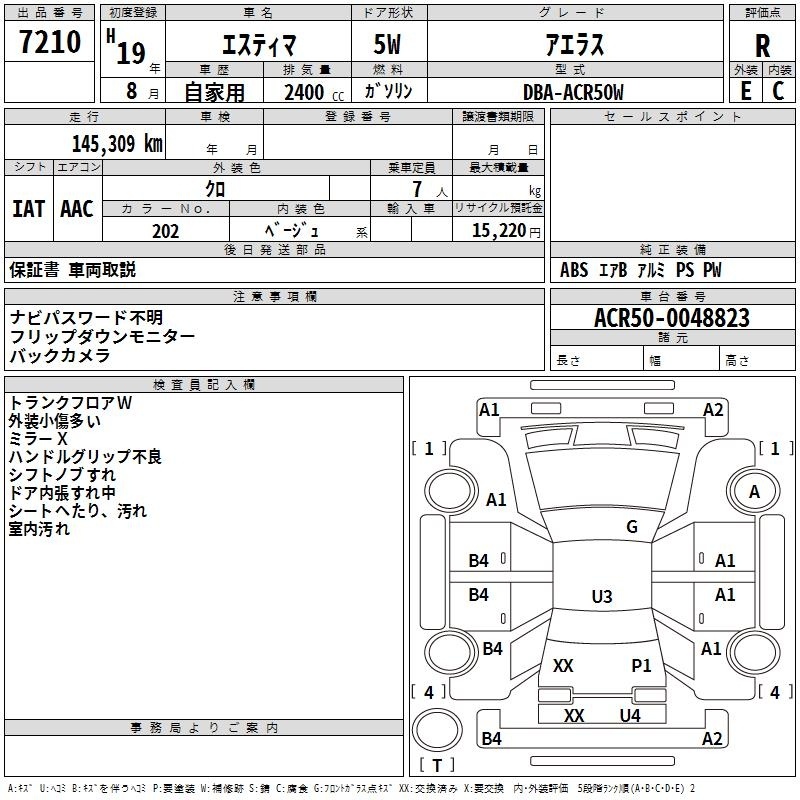 TOYOTA ESTIMA - лот 7210