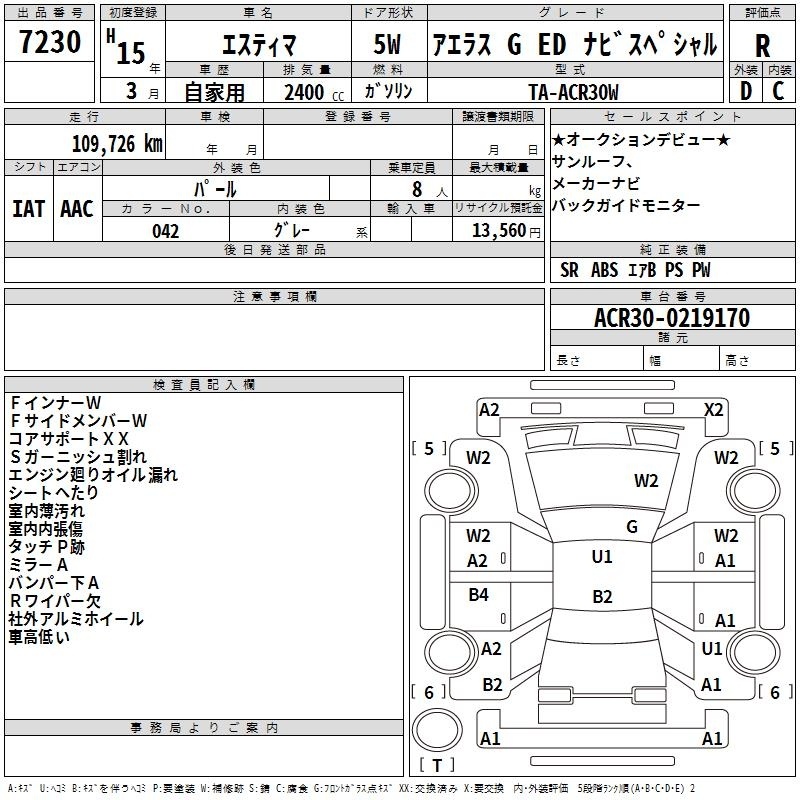 TOYOTA ESTIMA - лот 7230
