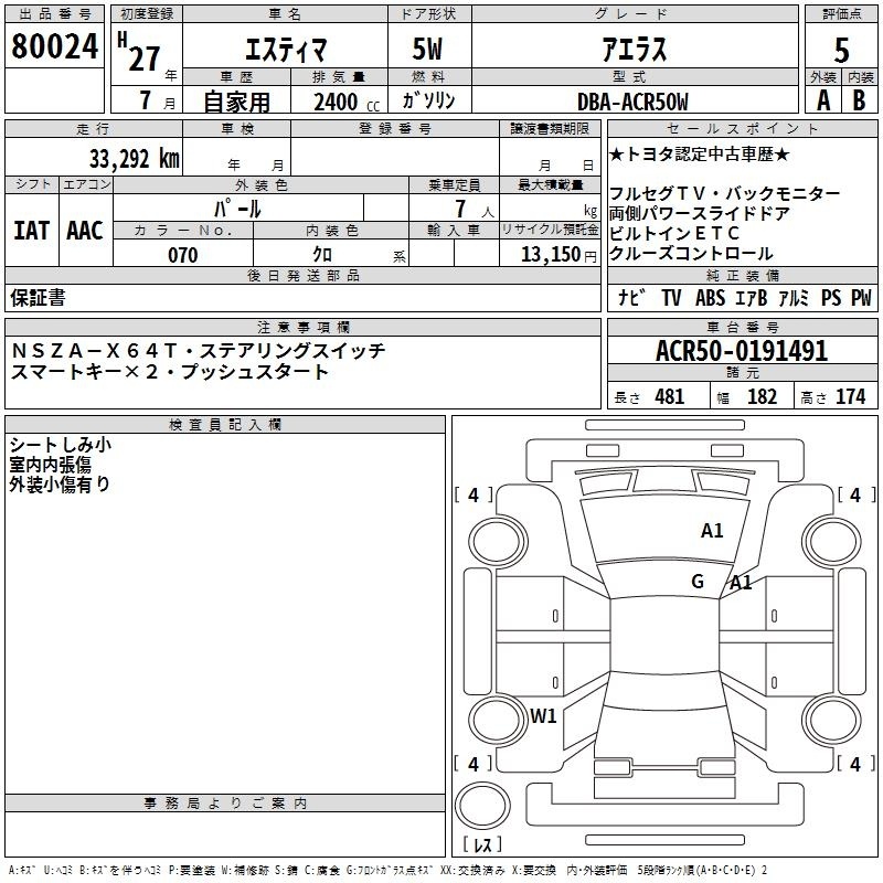 TOYOTA ESTIMA - лот 80024