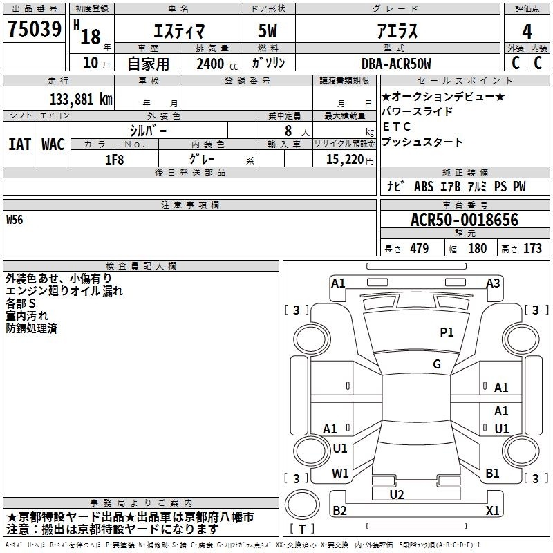 TOYOTA ESTIMA - лот 75039