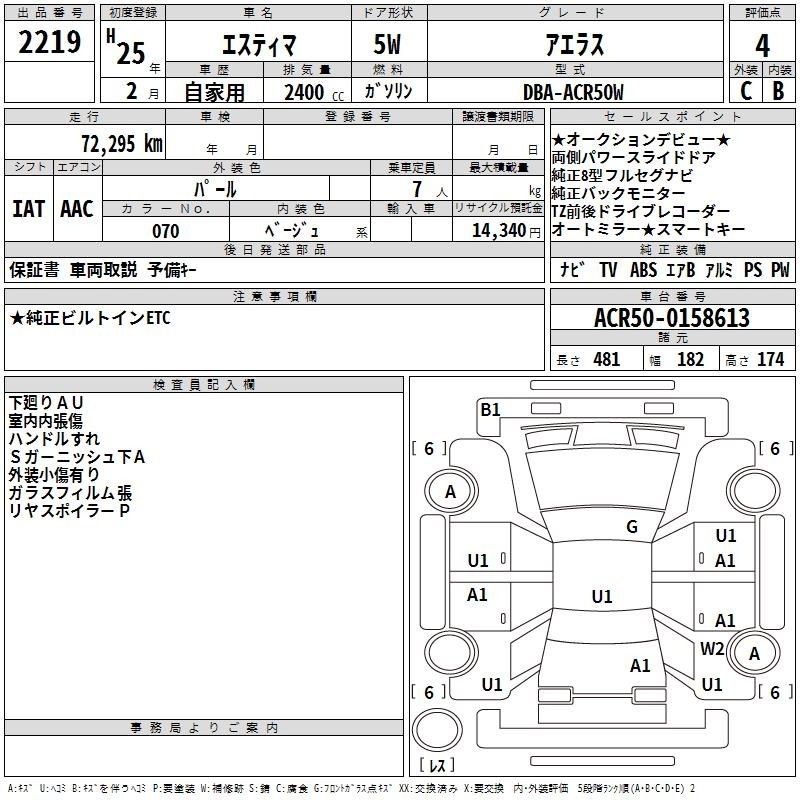 TOYOTA ESTIMA - лот 2219