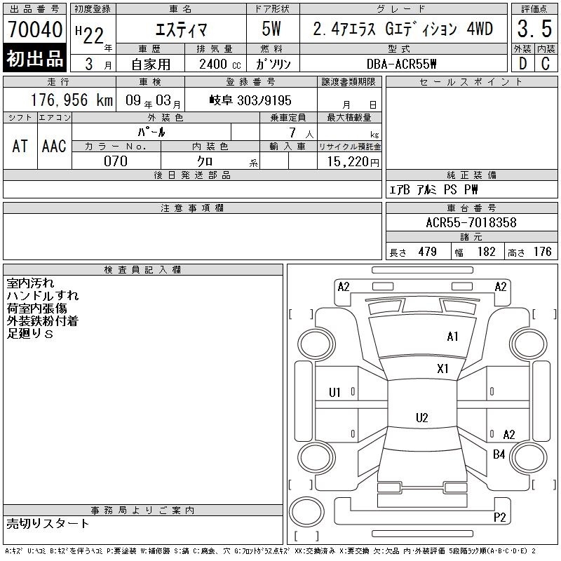 TOYOTA ESTIMA - лот 70040