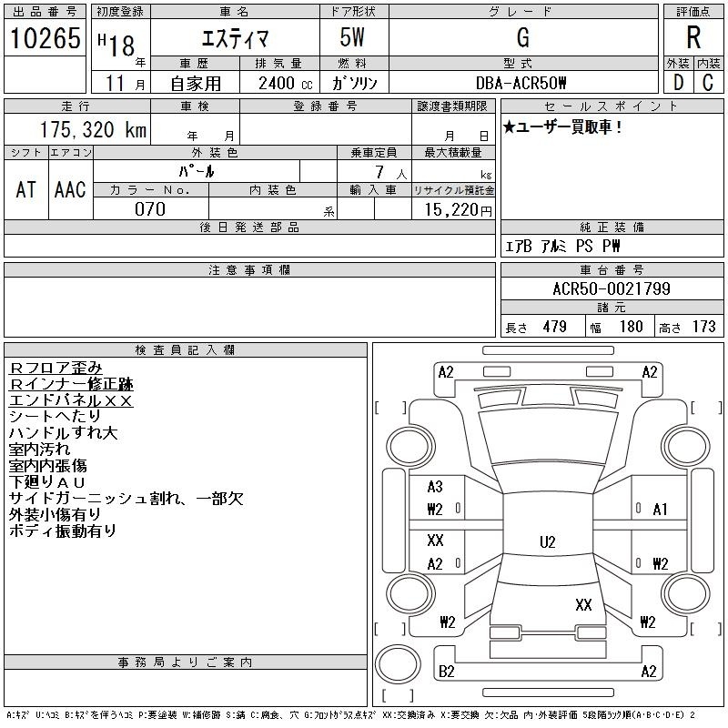 TOYOTA ESTIMA - лот 10265