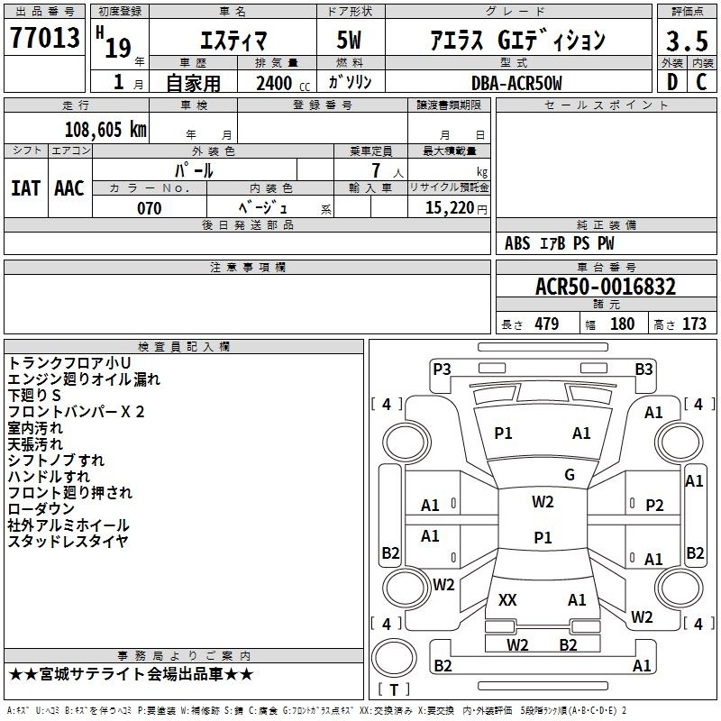 TOYOTA ESTIMA - лот 77013