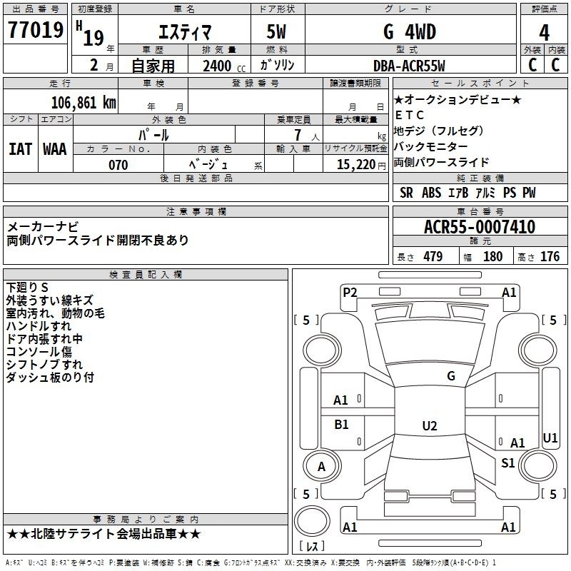 TOYOTA ESTIMA - лот 77019
