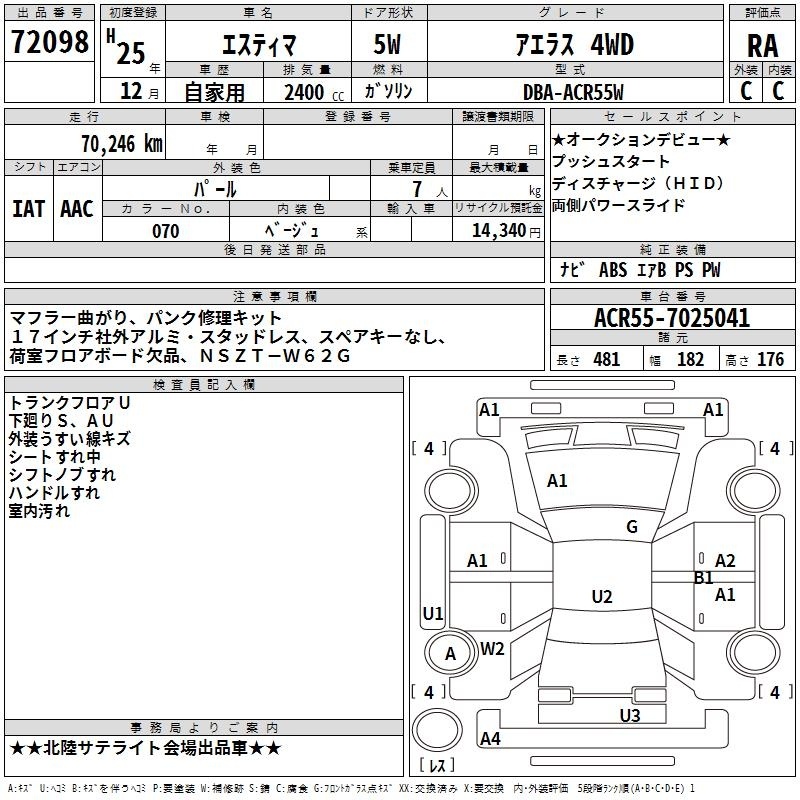 TOYOTA ESTIMA - лот 72098