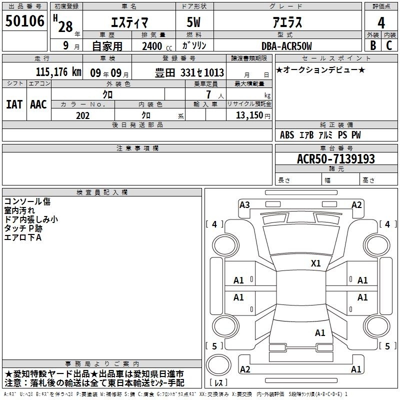 TOYOTA ESTIMA - лот 50106
