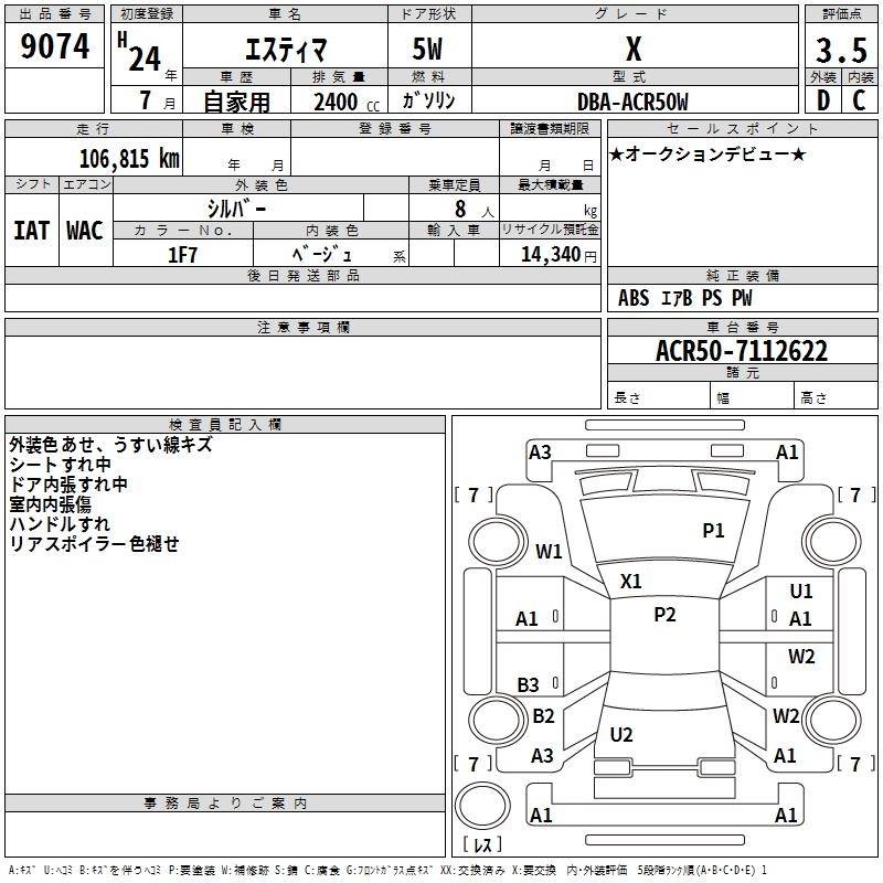 TOYOTA ESTIMA - лот 9074