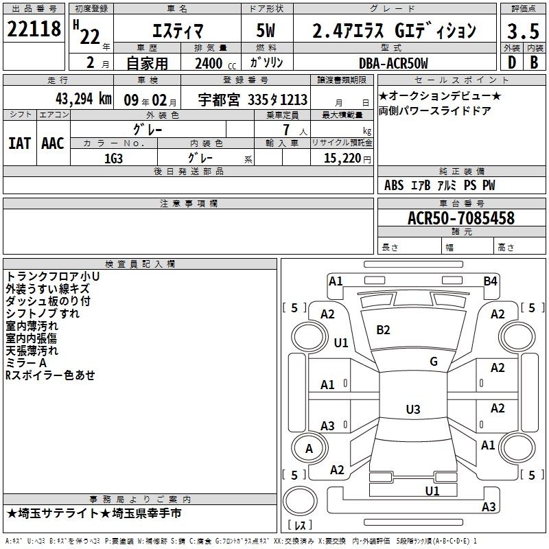 TOYOTA ESTIMA - лот 22118