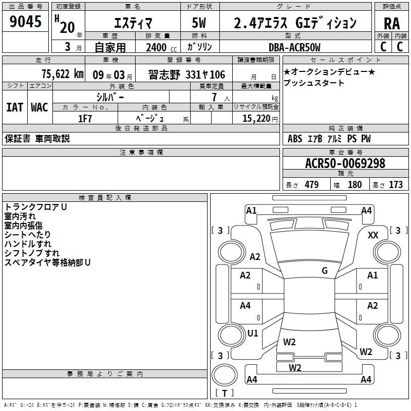 TOYOTA ESTIMA - лот 9045