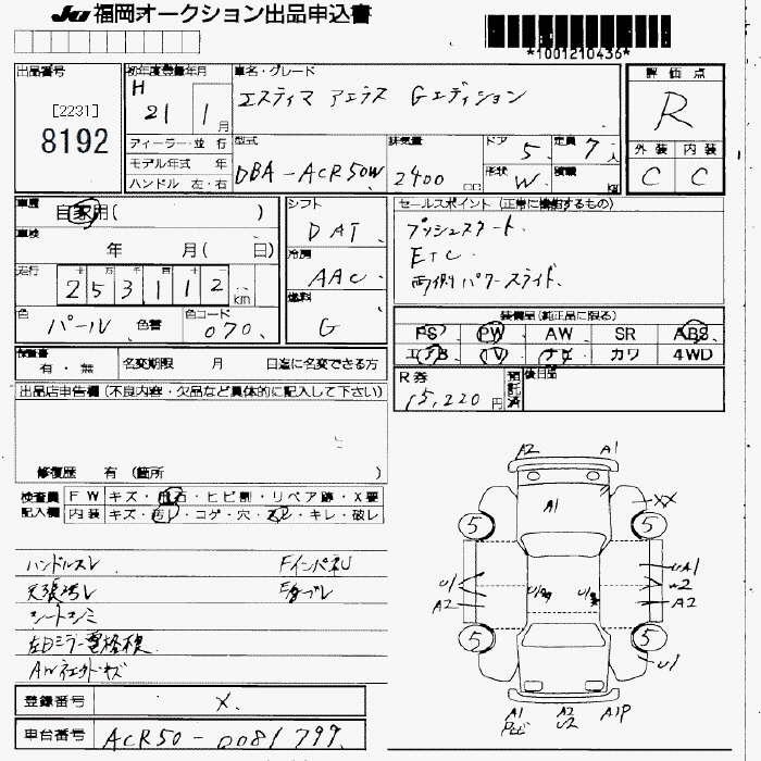 Все аукционы TOYOTA ESTIMA