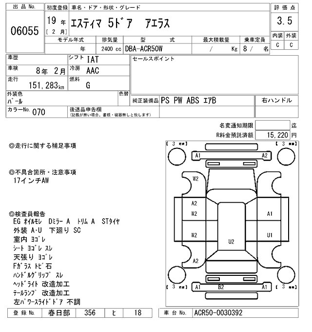 TOYOTA ESTIMA - лот 6055