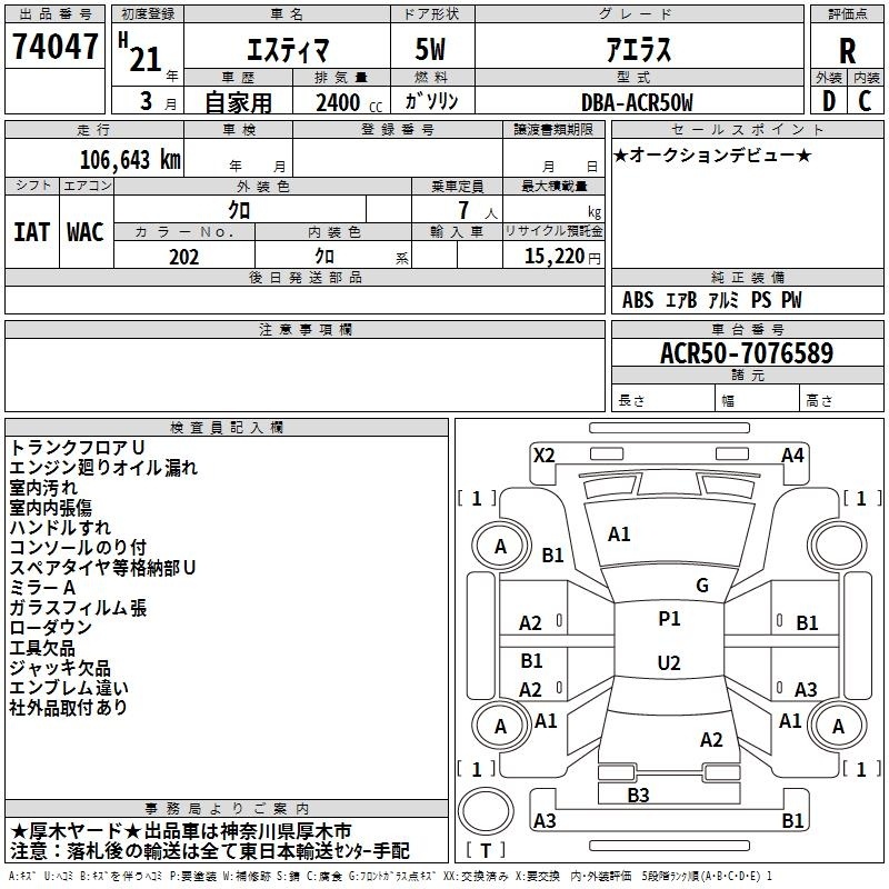 TOYOTA ESTIMA - лот 74047