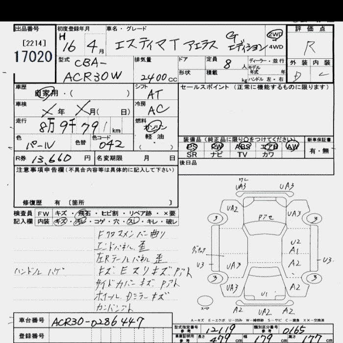 TOYOTA ESTIMA - лот 17020