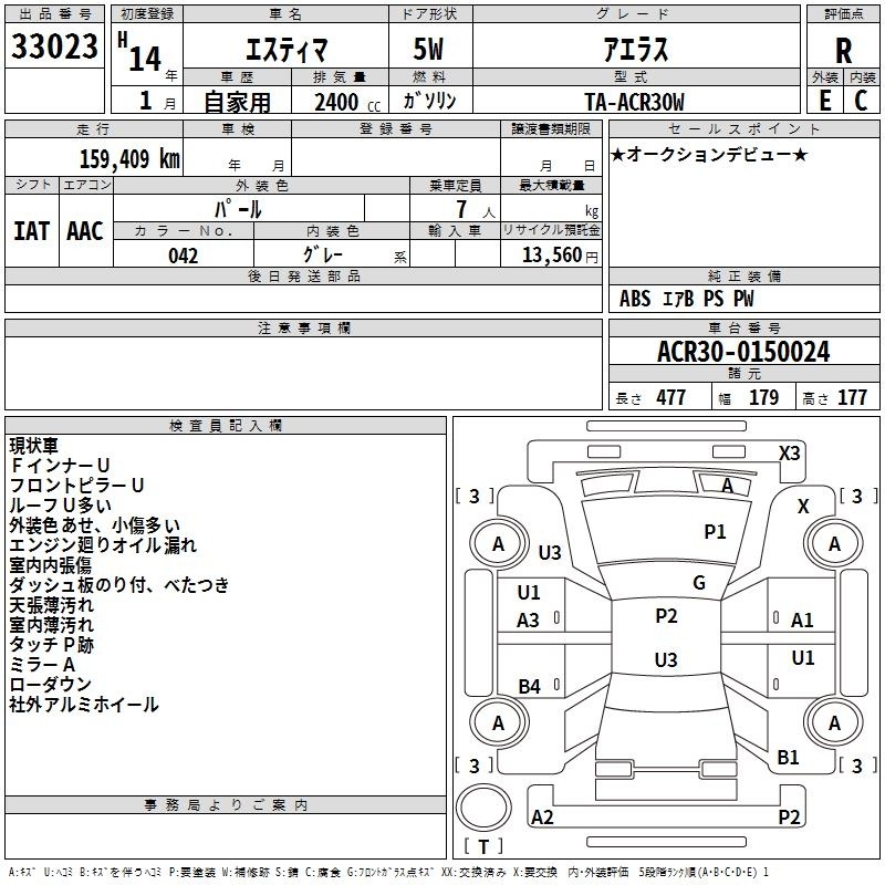 TOYOTA ESTIMA - лот 33023