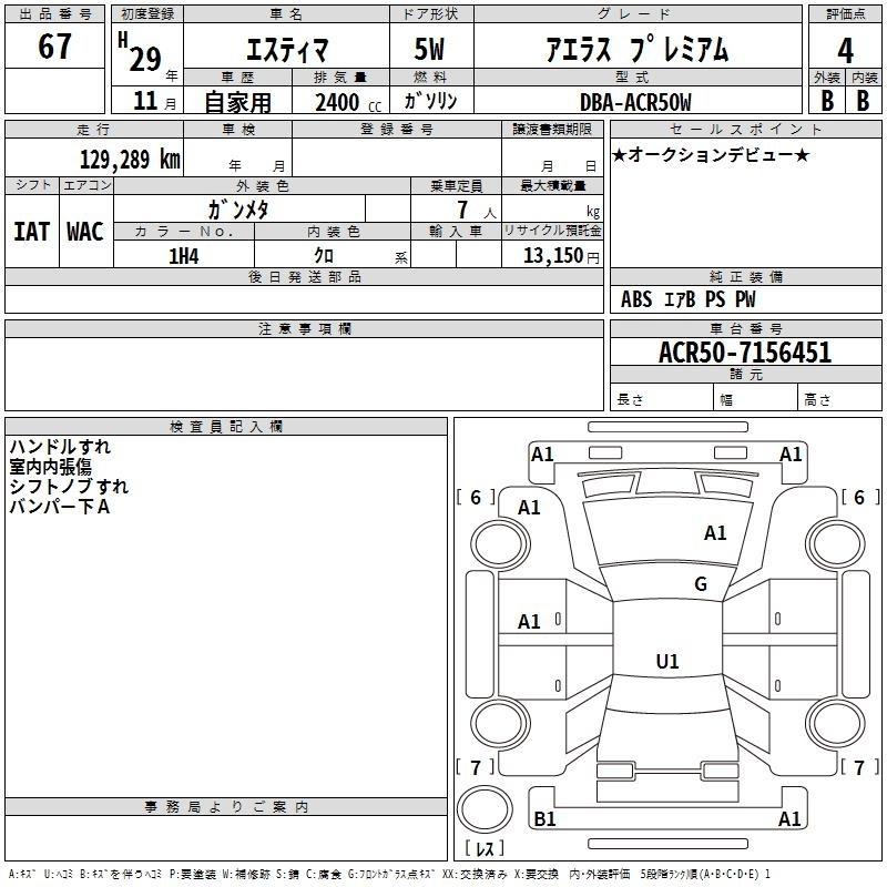 TOYOTA ESTIMA - лот 67