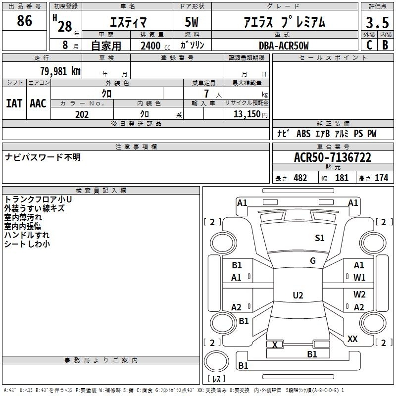 TOYOTA ESTIMA - лот 86