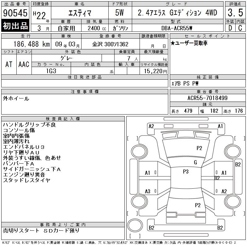 TOYOTA ESTIMA - лот 90545