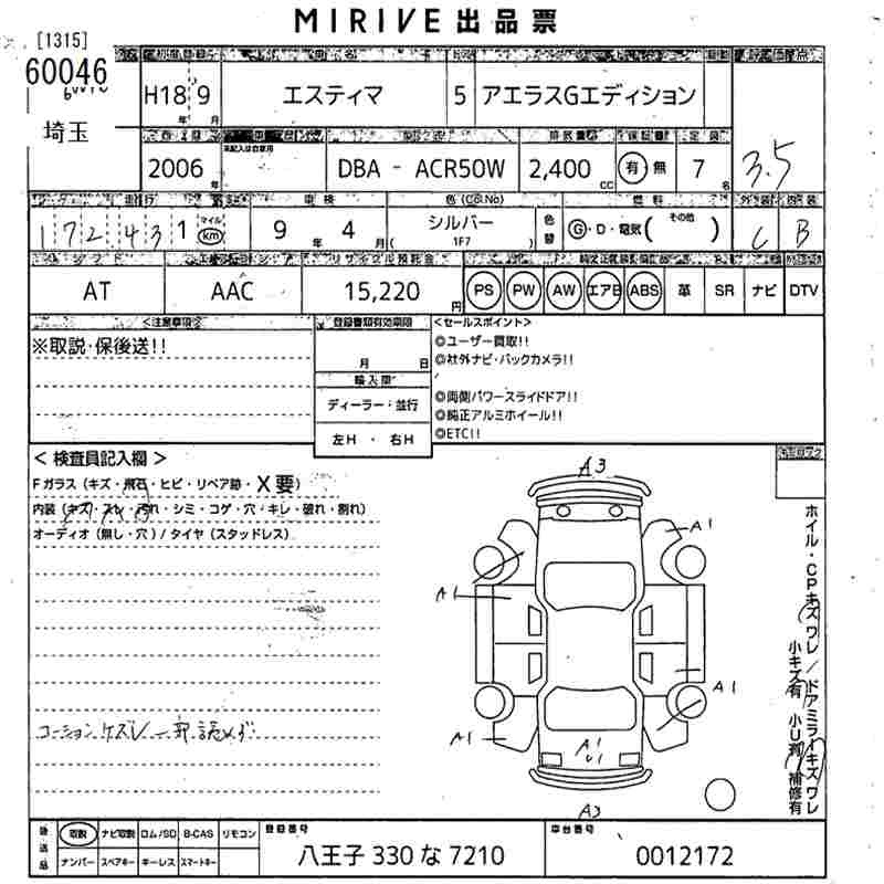 TOYOTA ESTIMA - лот 60046