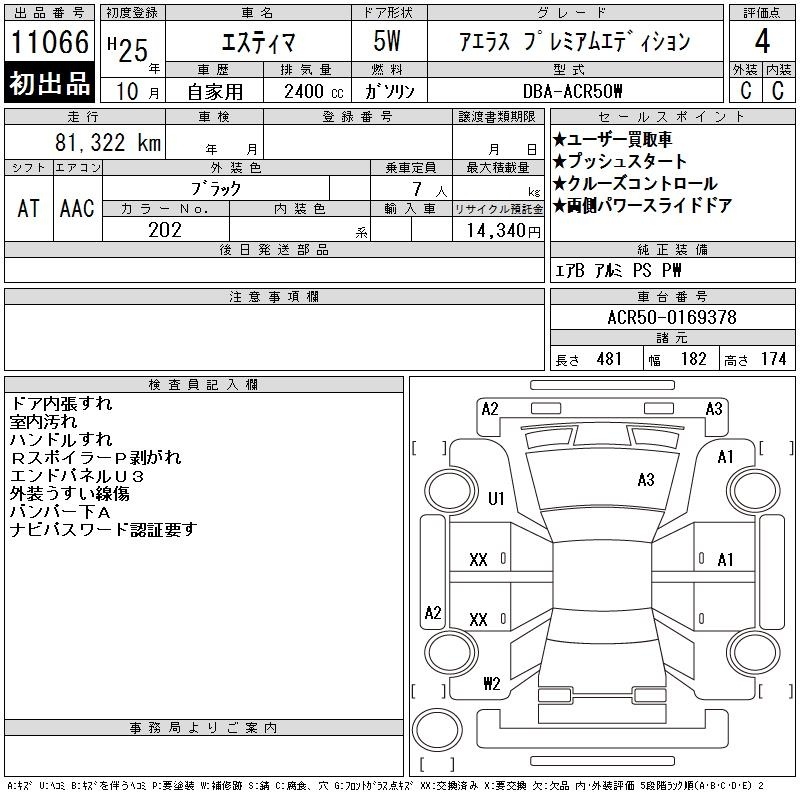 TOYOTA ESTIMA - лот 11066