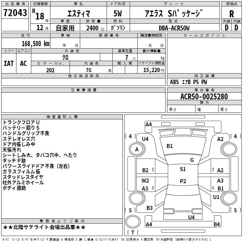 TOYOTA ESTIMA - лот 72043