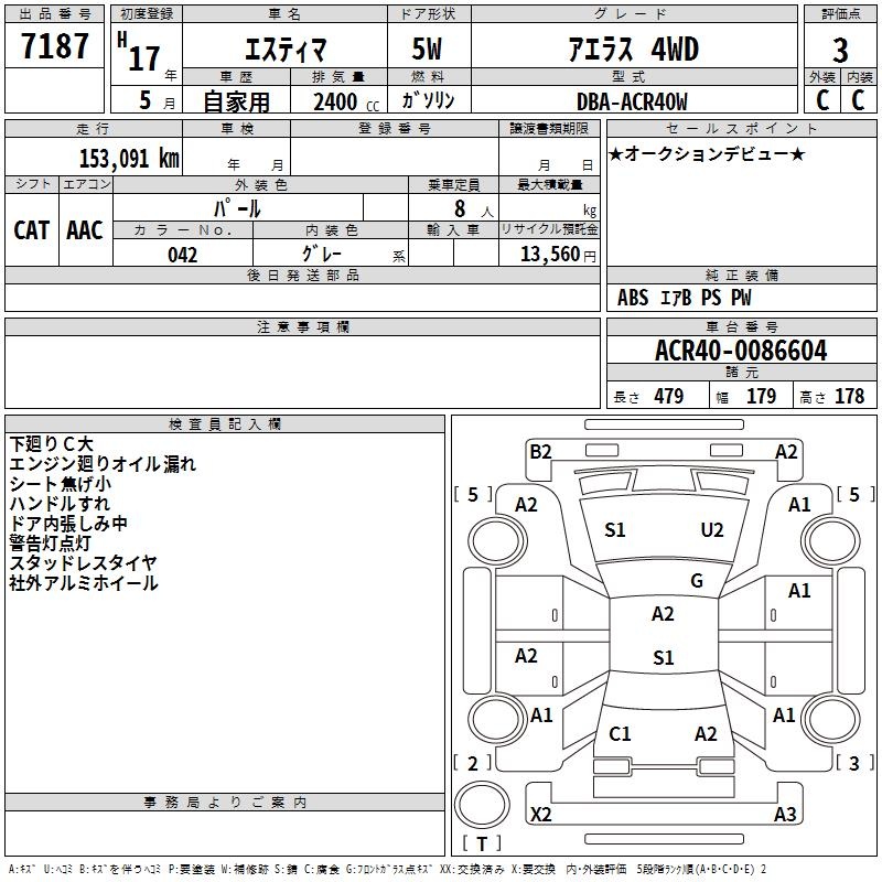 TOYOTA ESTIMA - лот 7187