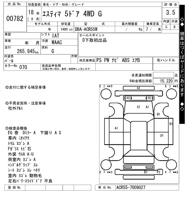 TOYOTA ESTIMA - лот 782