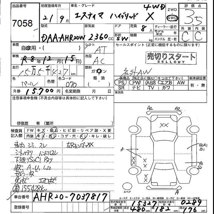 TOYOTA ESTIMA - лот 7058