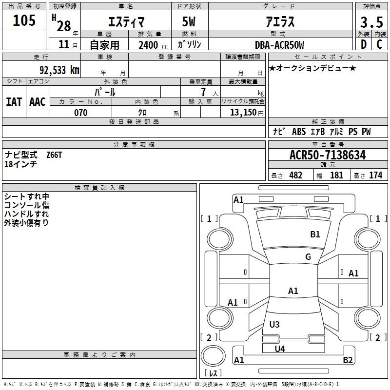 TOYOTA ESTIMA - лот 105