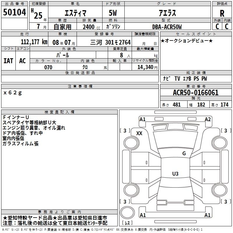 TOYOTA ESTIMA - лот 50104
