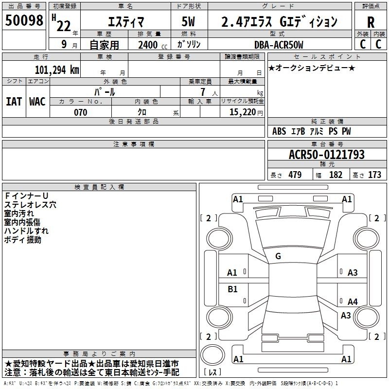 TOYOTA ESTIMA - лот 50098