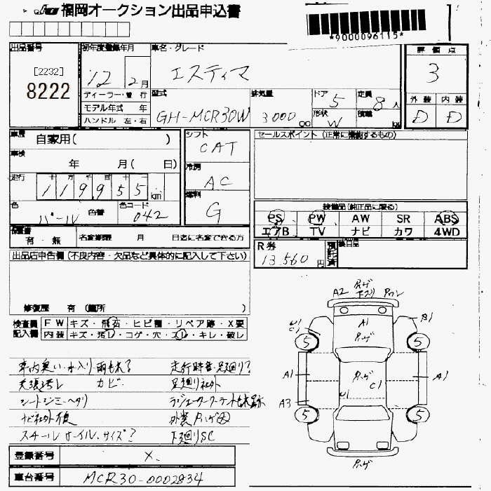 TOYOTA ESTIMA - лот 8222