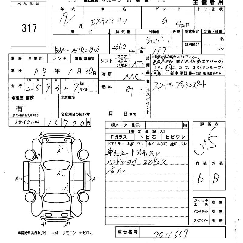 TOYOTA ESTIMA - лот 317