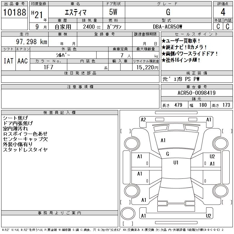 TOYOTA ESTIMA - лот 10188