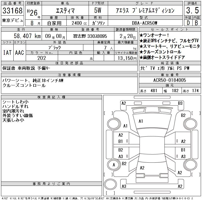 TOYOTA ESTIMA - лот 33168