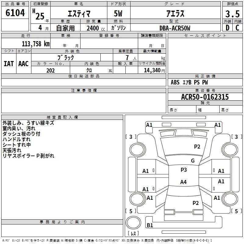 TOYOTA ESTIMA - лот 6104