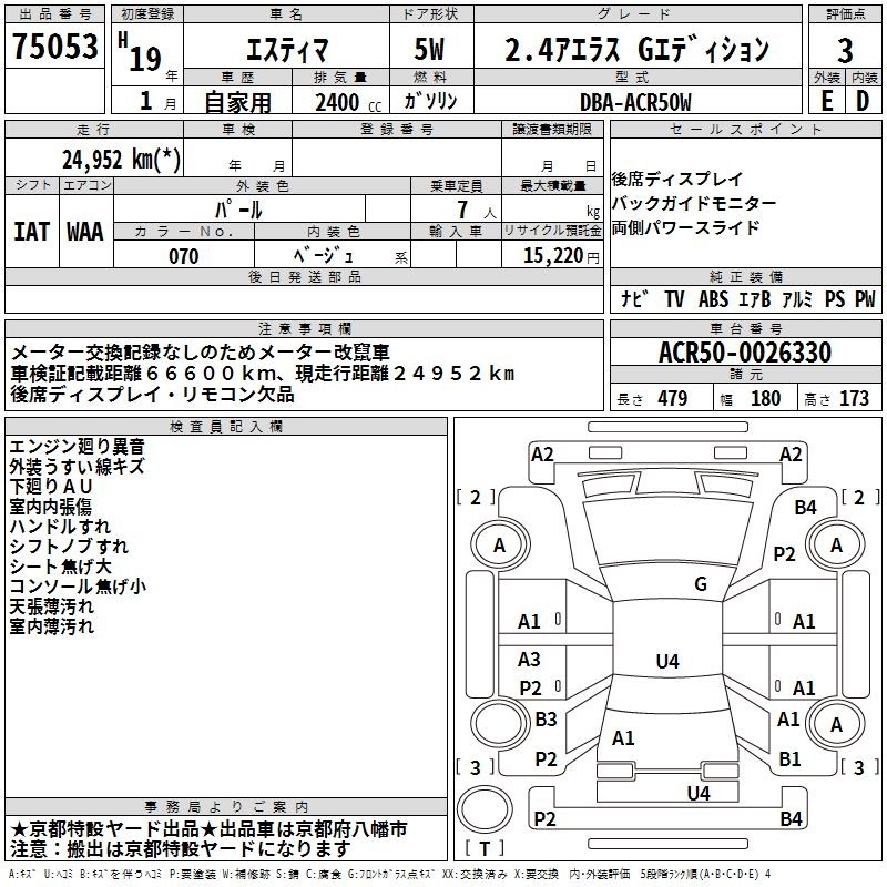 TOYOTA ESTIMA - лот 75053