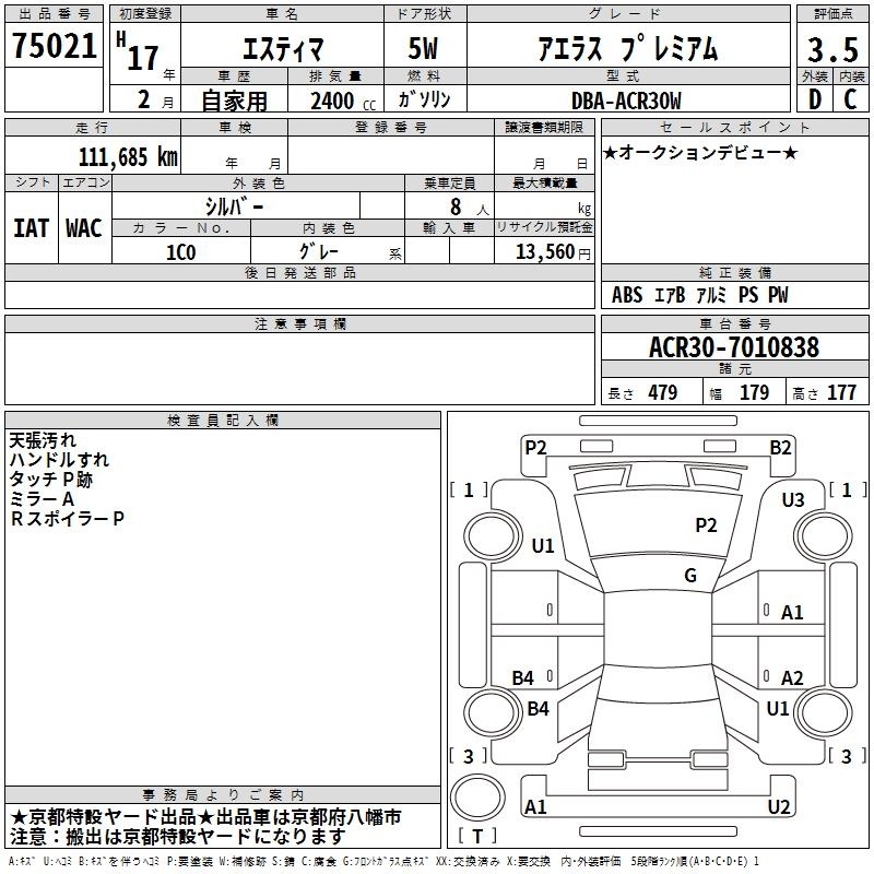 TOYOTA ESTIMA - лот 75021