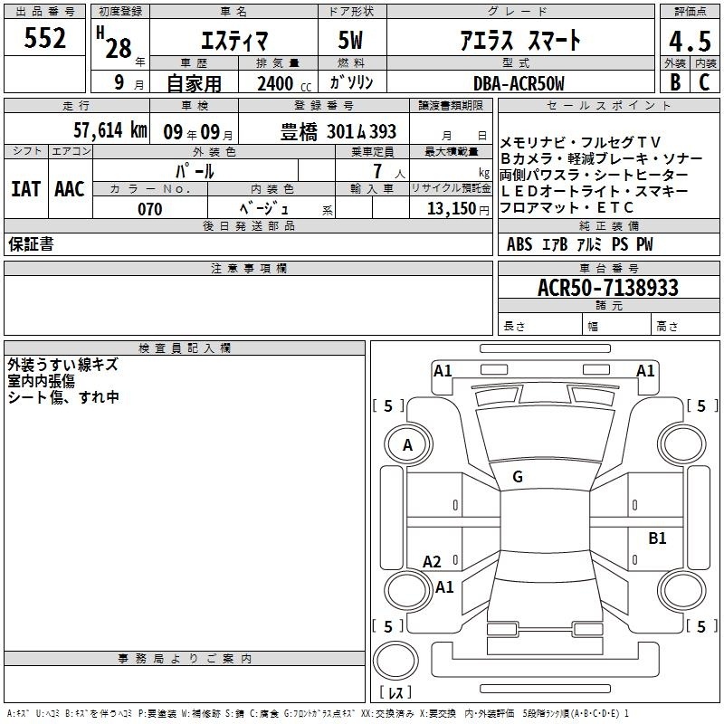 TOYOTA ESTIMA - лот 552