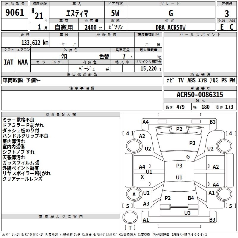 TOYOTA ESTIMA - лот 9061